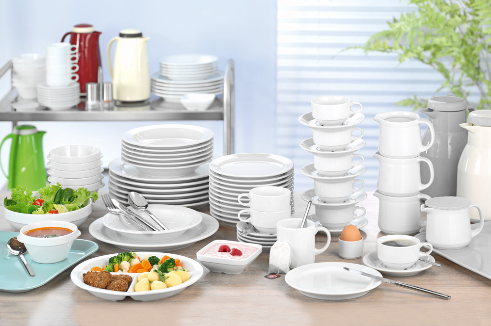 Ein Qualitätsporzellan »Made in Germany« zum Niedrigpreis! Dieses Geschirr ist allen gängigen Tablettgrößen der Warmhaltesysteme angepasst.