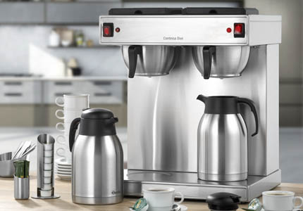 Mit der "Duothek Therm" und der "Duothek Plus" bewältigen Sie auch größere Meetings, Schulungen oder den Messestand mühelos. Während Sie mit einer Kanne servieren, brüht in der anderen bereits frischer Kaffee.