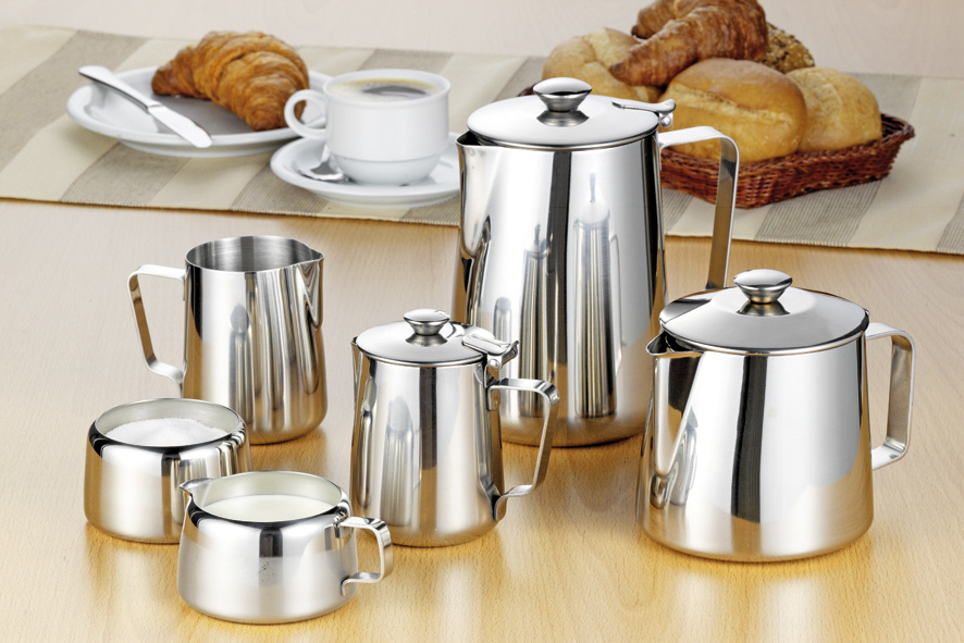 Komplett aus Edelstahl 18/10. Die polierten Oberflächen sind pflegeleicht und sorgen für die notwendige Hygiene. Auch innen ohne Ecken und Kanten, daher gut zu reinigen.