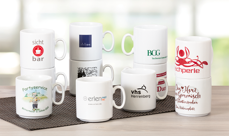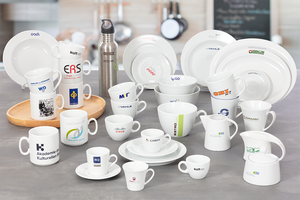 Firmenporzellan, Kindergeschirr aus Melamin, hochwertige Gläser, Kaffeebecher aus Porzellan, Isolierkannen aus Edelstahl oder praktische Tabletts. Ob auf der Messe, im Meeting oder als Werbegeschenk Ihre Gäste werden einen bleibenden Eindruck mitnehmen.
